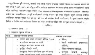 "एकल महिलाको हकमा ६० वर्ष उमेर पुरा भई निर्देशिका बमोजिम शर्त पुरा भएको र जेष्ठ नागरिकको हकमा ७० वर्ष पुरा भएको नागरिकताको प्रतिलिपी ।बिधवा महिलाको लागि श्रीमान्को मृत्युदर्ता प्रमाण पत्र प्रतिलिपी, अन्यत्रबाट आएको भए बसाई सराई प्रमाण पत्र, पासपोर्ट साईजको २÷२ प्रति फोटो, निवेदनदलित जेष्ठको हकमा ६० वर्ष उमेर पुरा भएको नागरिकता प्रतिलिपी।दलित बालबालिका पोषण अनुदानको लागि (जन्मेदेखी पाँच बर्ष) जन्मदर्ता र आमा वा संरक्षकको नागरिताको प्रतिलिपी ।अपा· परिचय पत्रको लागि जिल्ला महिला तथा वालवालिका कार्यालयबाट जारि गरिएको अपा·ता परिचय पत्र, नागरिकता वा जन्म दर्ता प्रमाण पत्र, पुर्ण अपा·को हकमा संरक्षक समेतको २ प्रति फोटो (सबै लाभ ग्राहीहरुको निवेदनसंग २÷२ प्रति फोटो अनिवार्य)\"
