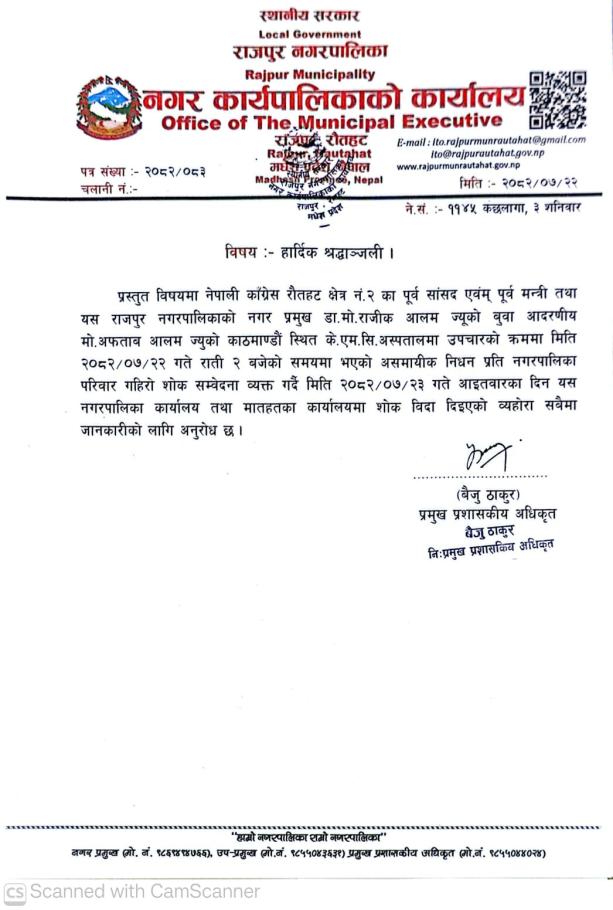 हार्दिक श्रद्धाञ्जली एवम् शोक बिदा सम्बन्धमा ।